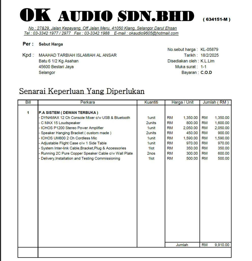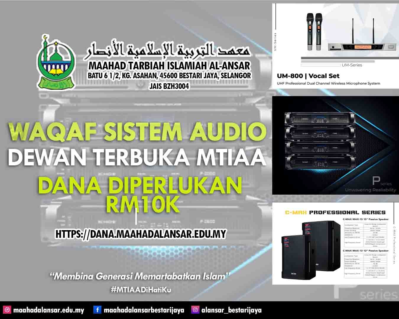 WAQAF SISTEM AUDIO DEWAN TERBUKA MAAHAD TARBIAH ISLAMIAH ALANSAR.